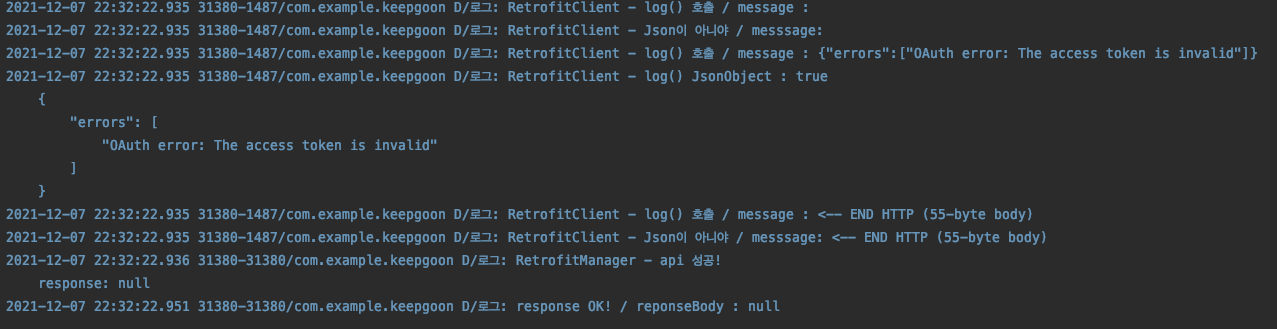 Log.d(TAG, "RetrofitClient - Json์ด ์๋์ผ / message: $message")