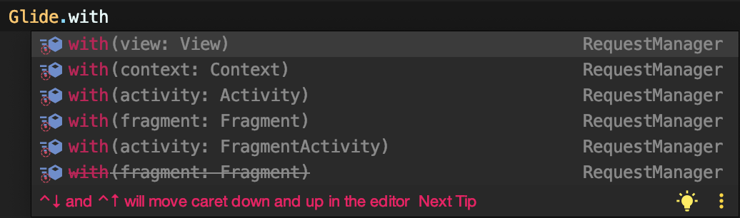 with 메서드에는 Context 외에도 View, Activity, Fragment, FragmentActivity가 들어갈 수 있다.