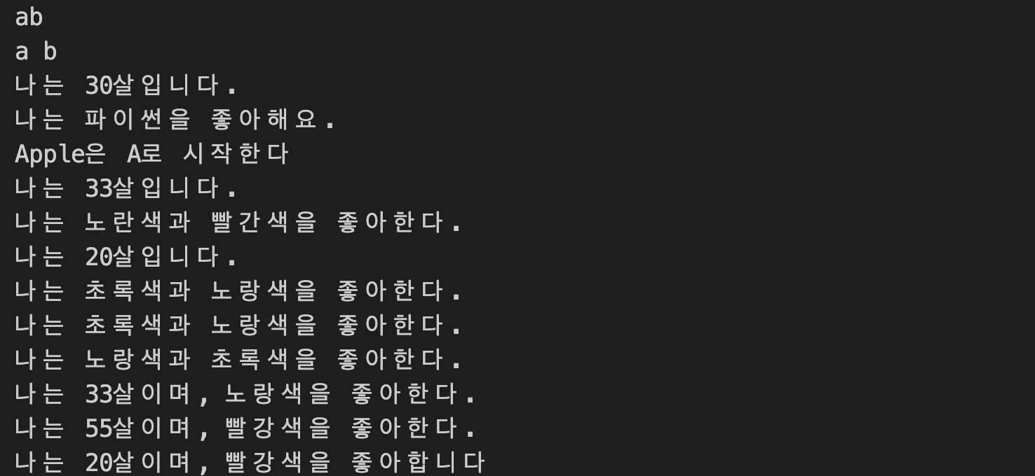 print("๋๋ %s์๊ณผ %s์์ ์ข์ํ๋ค." % ("๋