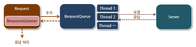 //Volly๋ ์์ฒญ๊ฐ์ฒด๋ฅผ ๋ง๋ค๊ณ Que์์ ๋ฃ์ผ๋ฉด ui์์ ์ฒ๋ฆฌํ ์ ์๋๋ก ์๋ต์ return ํด์ค!