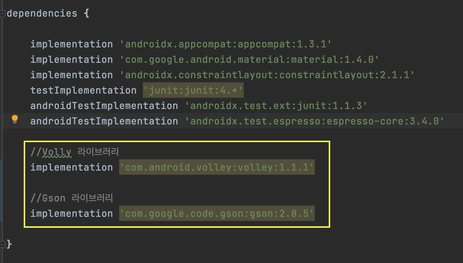 build.gradle์ dependencies์ ๋ผ์ด๋ธ๋ฌ๋ฆฌ๋ฅผ ์ถ๊ฐํ์.